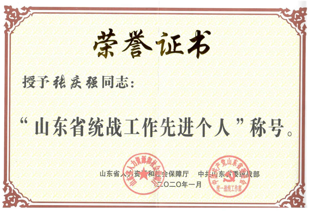 全省统战工作先进表彰活动由山东省委统战部、山东省人力资源和社会保障厅联合开展,四年评比一次,范围包括各地市、高校、科研院所、国有大型企业。本次全省共表彰先进单位36个、先进个人60人,其中高校有6个单位、9名同志获得先进称号。yl34511线路中心党委统战部张庆强同志荣获先进个人荣誉称号。