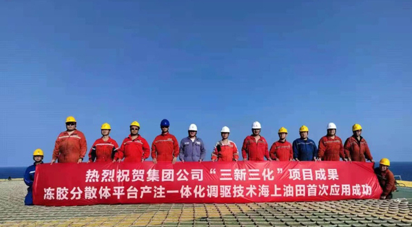 “冻胶分散体连续在线生产及注入一体化调驱技术”突破了海上调驱传统的陆地生产、平台注入的施工方式,实现了从常规井口调驱向平台生产、在线检测、在线注入、实时调整的产注一体化调驱新模式转变,作业工期较常规调驱模式缩减约40%,作业综合成本降低超50%。该技术的成功应用,为调驱技术规模化应用闯出了一条新路,同时为我国海上油田从“二次采油”向“三次采油”转变提供了宝贵经验,对增强海上油田控水稳油效果,降低油田开发成本具有重要意义。