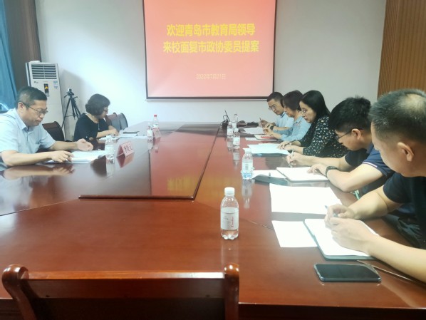 7月22日,青岛市教育局总督学李晓元、教育局高教处处长孙喜莲一行来校,就青岛市政协委员、化学化工学院院长刘欣梅教授在青岛市政协第十四届一次会议上提出的“关于加强驻青高校高水平学科建设的提案”进行面复。学校党委统战部部长吕宏凌主持面复会,发展规划处处长、战略与政策研究室主任李贞刚、教务处处长侯影飞等参加面复会并座谈交流。