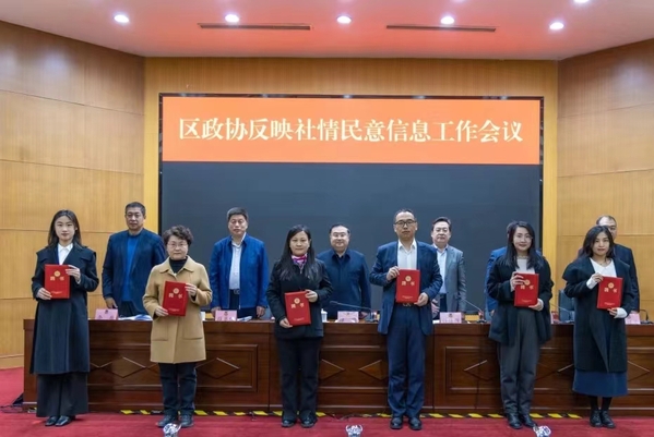 会议传达学习了全国政协办公厅和全省、全市政协反映社情民意信息工作座谈会精神,宣读了区政协《关于加强和改进反映社情民意信息工作的实施意见》《反映社情民意信息工作评选表扬办法》,为首次聘任的三届区政协特邀信息员颁发了聘书。