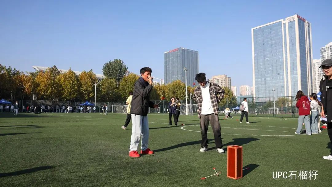 投壶是“投箭入壶”的简称,是中国古代宴饮时一种集技术与趣味为一身的投掷游戏,融合了射礼仪节与华夏文明精髓。比赛中,同学们各展投壶技巧,轻盈投掷与沉稳调整交相辉映。