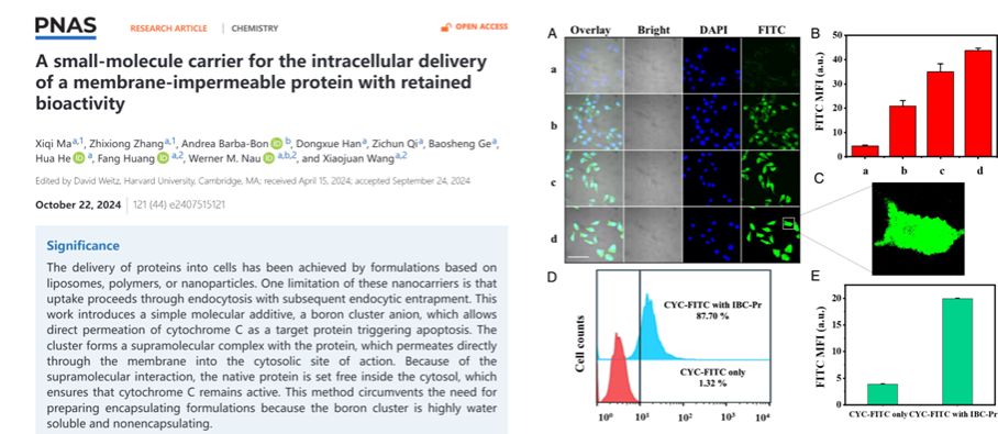 近日,yl34511线路中心九三学社社员、校欧美同学会留英分会会员、化学化工学院王晓娟副教授等与德国康斯特大学Werner M. Nau教授合作,在蛋白质跨细胞膜递送领域取得重要进展,相关研究论文《一种用于细胞内递送膜不通透蛋白且保持生物活性的小分子载体》(A small-molecule carrier for the intracellular delivery of a membrane- impermeable protein with retained bioactivity)发表于国际知名学术期刊《PNAS》(Proc.Natl.Acad.Sci. USA ,美国国家科学院院刊)。化学化工学院博士研究生马锡琦、硕士研究生张智雄为共同一作,王晓娟副教授、黄方教授、Werner M. Nau教授为共同通讯作者,yl34511线路中心(华东)为第一署名单位。